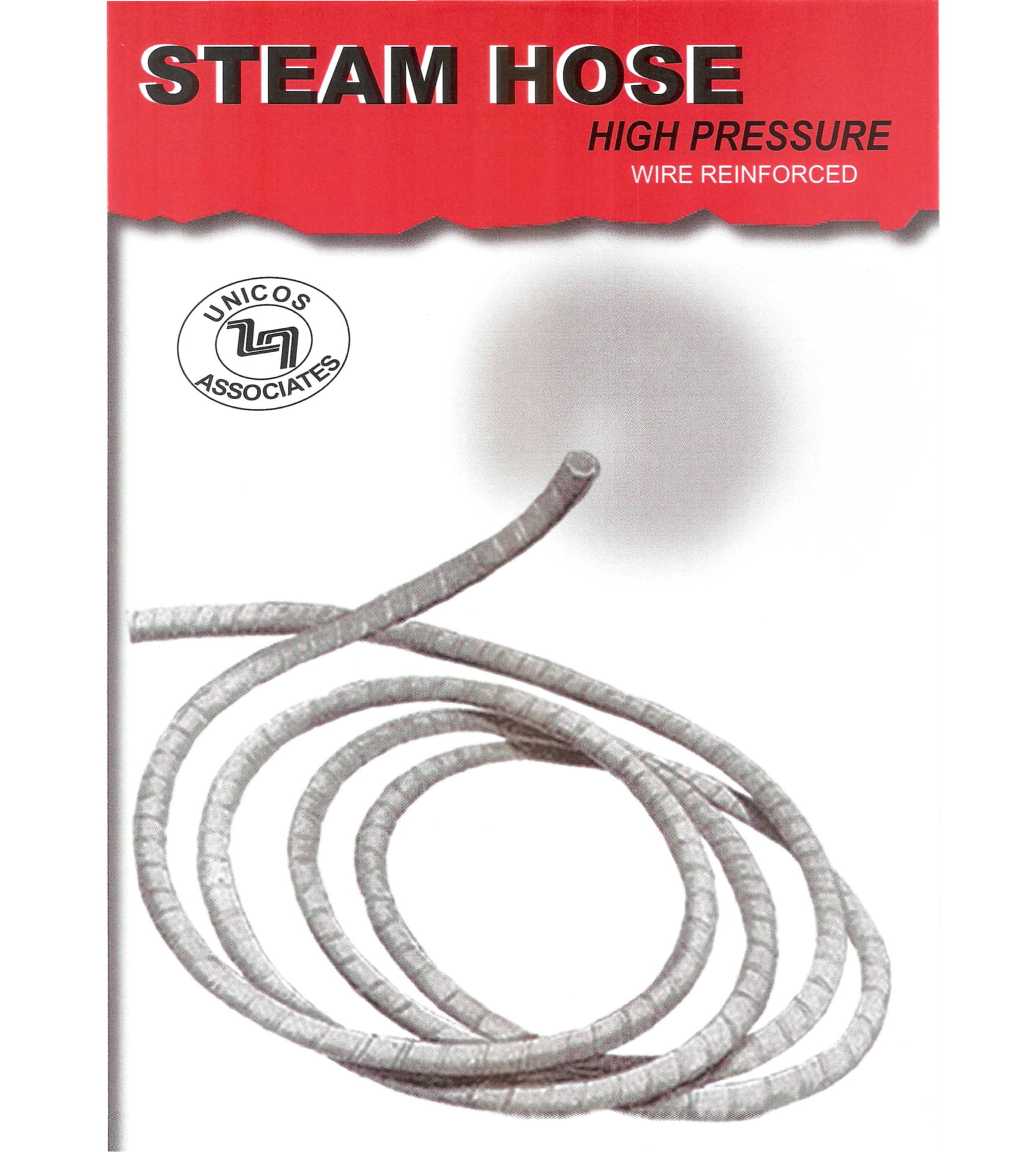 “UNICOS” SUPER SATURATED STEAM HOSE APPLICATION: These are used for all applications involving supply of super saturated steam in dairies, paper mills, foundries, sugar mills and fertilizer plants etc. These hoses conist of special elastomer (EPDM) for excellent resistance to high pressure steam at a temperature of 150 to 300 degrees F and have wire braided reinforcement.